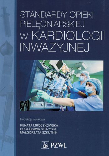 Rozdział 1: Zadania i kompetencje zespołu terapeutycznego w przygotowaniu pacjenta do procedur hemodynamicznych; 1. Diagnostyka inwazyjna chorób serca - Gabriela Ptaszek, Barbara Stołecka, Mariola Śleziona, Lucyna Graf; 2. Wybrane zabiegi terapeutyczne wykonywane droga przez naczyniową Piotr Jerzy Gurowiec, Magdalena Cwynar; 3. Interwencje kardiologiczne u dzieci Małgorzata Szkutnik; 4. Wsparcie hemodynamiczne i krążenie zewnątrz ustrojowe - Renata Mroczkowska, Bogusława Serzysko; 5. Główne powikłania w kardiologii inwazyjnej. Metody zapobiegania - Anna Mielech, Ewa Rogula; 6. Zakażenia szpitalne w kardiologi inwazyjnej - Bożena Krymska; 7. Ochrona radiologiczna pacjenta i personelu pracującego w pracowni hemodynamiki - Grażyna Kramarczyk; 8. Metody znieczulenia oraz podstawowe zasady monitorowania funkcji życiowych pacjenta podczas procedur przeznaczyniowych - Jerzy Czapla; 9. Organizacja pracowni hemodynamiki(Urszula Goebel); 10. Rola zadania i kompetencje pielęgniarki pracującej w pracowni hemodynamiki - Ewa Rogula, Anna Mielech; 11. Dokumentacja medyczna i pielęgniarska - Krystyna Czapla; 12. Przygotowanie pacjenta do procedur hemodynamicznych - Krystyna Czapla; Rozdział 2: Standardy kardiologicznej opieki pielęgniarskiej nad pacjentem w trakcie wybranych zabiegów kardiologii inwazyjnej; 1. Standard kardiologicznej opieki pielęgniarskiej wobec chorego w trakcie zabiegów interwencyjnych w tętnicach wieńcowych - Magdalena Janusz-Jenczeń, Beata Hornik, Iwona Włodarczyk , Agnieszka Młynarska; 2. standard kardiologicznej opieki pielęgniarskiej wobec chorego poddawanego zabiegowi przezskórnej implantacji stenów wieńcowych stenów uwalniających leki antyproliferacyjne - Elżbieta Sojka; 3. Standard kardiologicznej opieki pielęgniarskiej wobec chorego poddanego zabiegowi przezskórnej walwuloplastyki zastawki mitralnej i aortalnej --Agnieszka Młynarska, Magdalena Janusz-Jenczeń, Iwona Włodarczyk; 4. Standard kardiologicznej opieki pielęgniarskiej wobec chorego w trakcie przezskórnej angioplastyki tętnic szyjnych, nerkowych i obwodowych - Urszula Goebel; 5. Standard kardiologicznej opieki pielęgniarskiej wobec chorego w trakcie przezskórnego zamykania uszka lewego przedsionka - Urszula Goebel; 6. Standard kardiologicznej opieki pielęgniarskiej wobec chorego podczas zabiegu przezcewnikowej korekty niedomykalności zastawki mitralnej przez założenie Mitra Clip - Anna Ochała; 7. Standard kardiologicznej opieki pielęgniarskiej wobec chorego z zakrzepicą żył głębokich kończyn dolnych podczas implantacji filtra do żyły głównej dolnej - Anna Ochała; 8. Standard kardiologicznej opieki pielęgniarskiej wobec chorego wobec dziecka poddanego atrioseptostomii balonowej (Anna Ochała); 9. Standard kardiologicznej opieki pielęgniarskiej wobec chorego w trakcie przeznaczyniowego zamykania ubytków przegrody międzyprzedsionkowej oraz drożnych przewodów tętniczych - Anna Ochała; 10. Standard kardiologicznej opieki pielęgniarskiej wobec chorego podczas przezcewnikowej implantacji zastawki Melody - Anna Ochała; 11. Standard kardiologicznej opieki pielęgniarskiej wobec chorego poddawanego zabiegowi denerwacji nerkowej - Magdalena Jausz-Jenczeń, Beata Hornik, Iwona Włodarczyk, Agnieszka Młynarska; 12. Standard kardiologicznej opieki pielęgniarskiej wobec chorego poddanego ablacji RF mięśnia sercowego w zaburzeniach rytmu - Eliza Szklarz; 13. Standard kardiologicznej opieki pielęgniarskiej nad chorym w trakcie implantacji rozrusznika, implantacji kardiowertera-defibrylatora serca, w tym z opcją resynchornizacji - Eliza Szklarz; 14. Standard kardiologicznej opieki pielęgniarskiej wobec chorego poddanego implantacji elektrody endokawitarnej do symulacji czasowej - Eliza Szklarz; 15.Standard kardiologicznej opieki pielęgniarskiej wobec pacjenta poddanego zabiegowi usunięcia elektrody - Eliza Szklarz; 16. Standard kardiologicznej opieki pielęgniarskiej wobec pacjenta podczas biopsji mięśnia sercowego - Agnieszka Młynarska, Beata Hornik, Magdalena Janusz-Jenczeń, Iwona Włodarczyk; 17. Standard kardiologicznej opieki pielęgniarskiej wobec pacjenta poddawanego przezskórnej embolektomii i fragmentacji zatoru płucnego - Iwona Włodarczyk, Beata Hornik, Magdalena Janusz -Jenczeń, Agnieszka Młynarska; Rozdział 3: Standard kardiologicznej opieki pielęgniarskiej nad pacjentem po zabiegach kardiologii inwazyjnej; 1. Standard opieki pielęgniarskiej nad pacjentem po inwazyjnych zabiegach diagnostycznych - Krystyna Czapla; 2. Standard opieki pielęgniarskiej nad pacjentem po wybranych przeznaczyniowych zabiegach terapeutycznych - Krystyna Czapla; 3. Standard opieki pielęgniarskiej nad pacjentem kontrapulsacją wewnątrzaortalną - Bożena Krymska; 4. Standard kardiologicznej opieki pielęgniarskiej nad pacjentem z urządzeniem wspomagającym pracę serca typu Impella - Magdalena Cwynar, Piotr Jerzy Gurowiec; 5. Standard opieki pielęgniarskiej nad pacjentem z założonym introducerem naczyniowym. Procedura usunięcia introducera naczyniowego - Barbara Stołecka, Gabriela Ptaszek, Lucyna Graf, Mariola Śleziona; 6. Standard opieki pielęgniarskiej nad pacjentem po zabiegu implantacji urządzenia stymulującego serce - Bogusława Serzysko, Renata Mroczkowska; 7. Standard edukacji pacjenta na temat samoobserwacji i codziennego życia z kardiowerterem-defibrylatoerm - Bogusława Serzysko, Renata Mroczkowska; 8. Standard opieki pielęgniarskiej nad dzieckiem po interwencji kardiologicznej - Renata Mroczkowska, Bogusława Serzysko; 9. Standard edukacji w profilaktyce zakażeń szpitalnych w kardiologii inwazyjnej - Bożena Krymska.