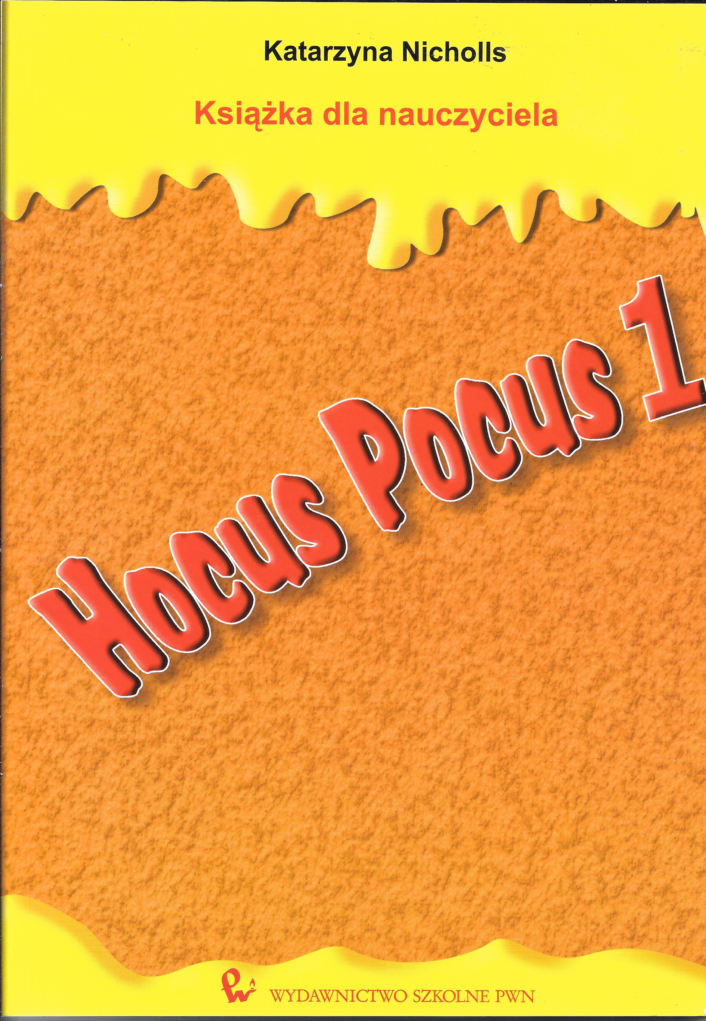 Hocus Pocus 1 : książka dla nauczyciela / Katarzyna Nicholls - Warszawa : Wydaw.Szkolne PWN, 2003 - 137 s. : tab.,il. ; 29 cm 30 k. obrazkowych + 1 karta wielka 58 x 84 cm
