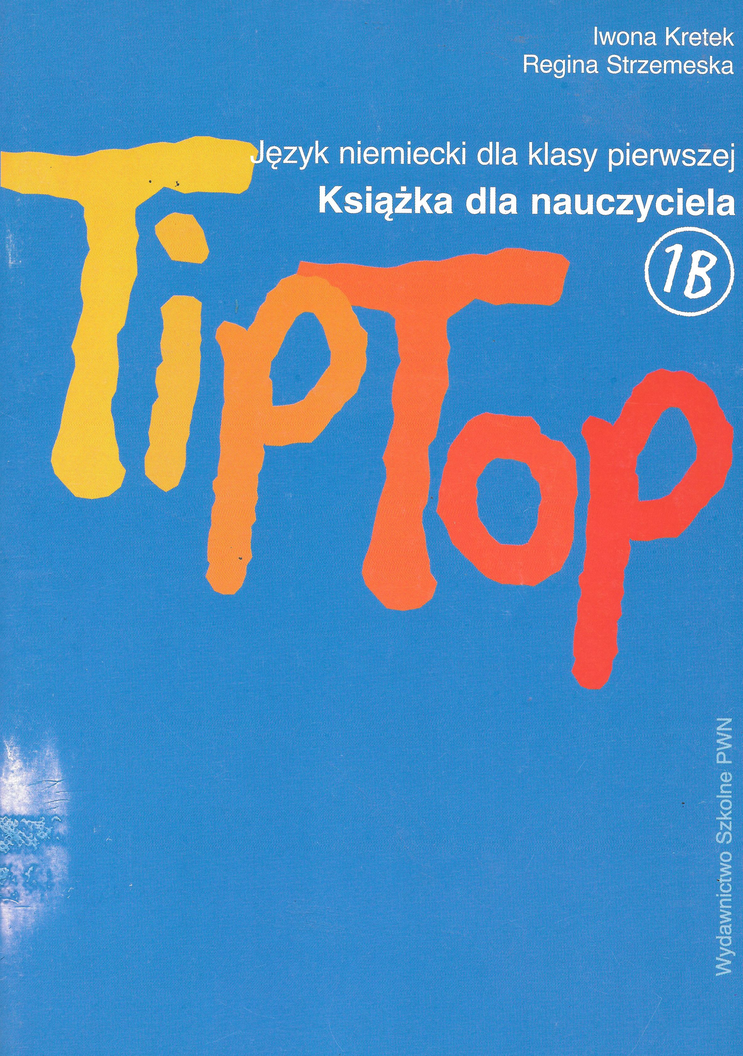 Tip Top 1B : język niemiecki dla klasy pierwszej : książka dla nauczyciela / Iwona Kretek, Regina Strzemeska. - Warszawa : Wydaw. Szkolne PWN, 2004. - 91, [1] s., [24] k. tabl. kolor. luz., [3] k. tabl. kolor. złoż. luz. : il., rys., tab. ; 29 cm.