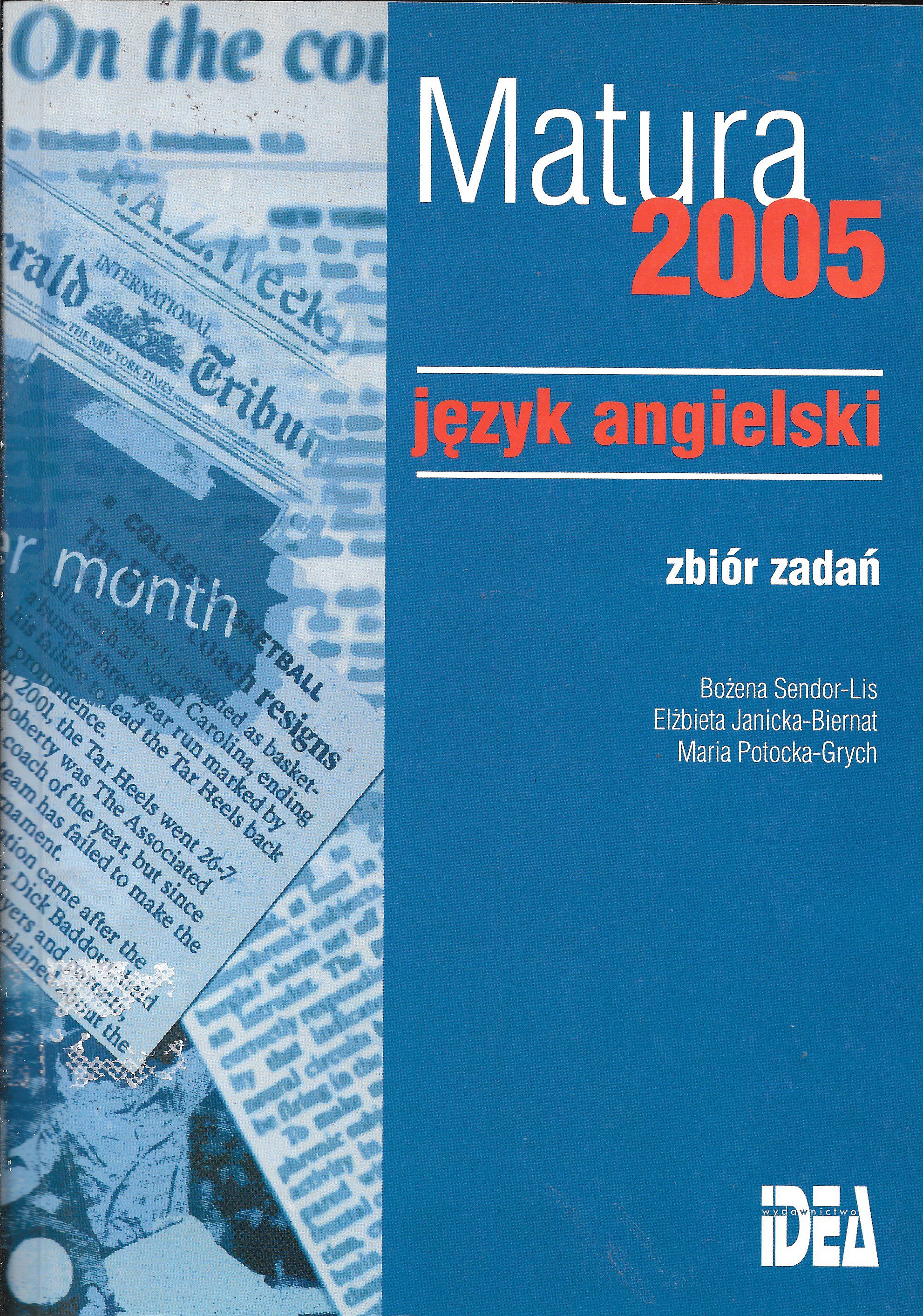 Matura 2005 - język angielski : zbiór zadań / Bożena Sendor-Lis, Elżbieta Janicka-Biernat, Maria Potocka-Grych. - Kraków : "Idea", 2003. - 120 s. : il., fot., tab. ; 24 cm + Transkrypcje tekstów, klucz do zadań : 36 s. : tab.