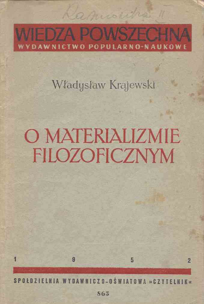 O materialiźmie filozoficznym / Władysław Krajewski. - Warszawa : "Czytelnik", 1952. - 77, [2] s. : il. ; 23 cm.