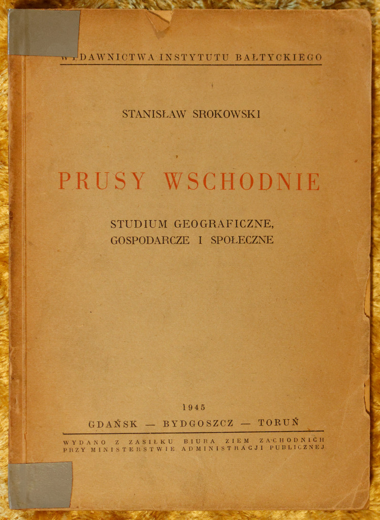Prusy Wschodnie : studium geograficzne, gospodarcze i społeczne / Stanisław Srokowski. - Gdańsk : [s.n.], 1945 ([Bydgoszcz] : Druk. PZWS [Państwowe Zakłady Wydawnictw Szkolnych]). - XII, 321 stron ; 21 cm.