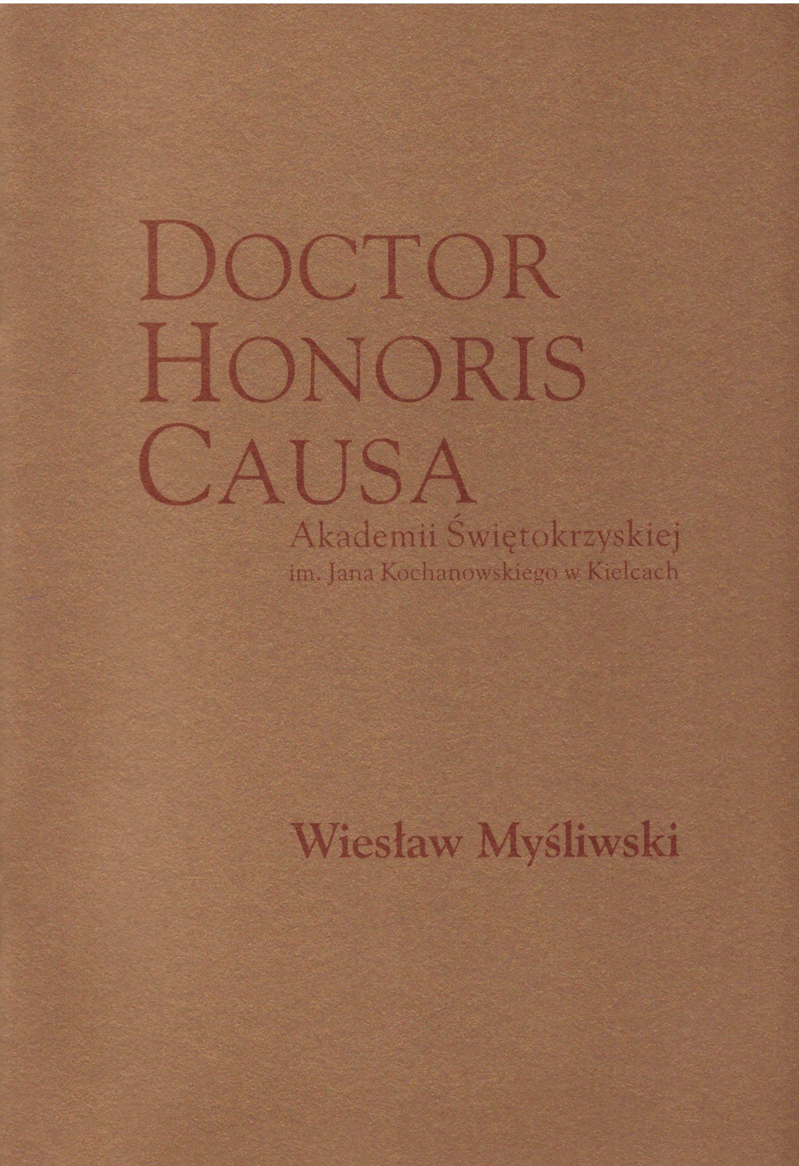 Tyt. okł.: Doctor Honoris Causa Akademii Świętokrzyskiej im. Jana Kochanowskiego w Kielcach - Wiesław Myśliwski