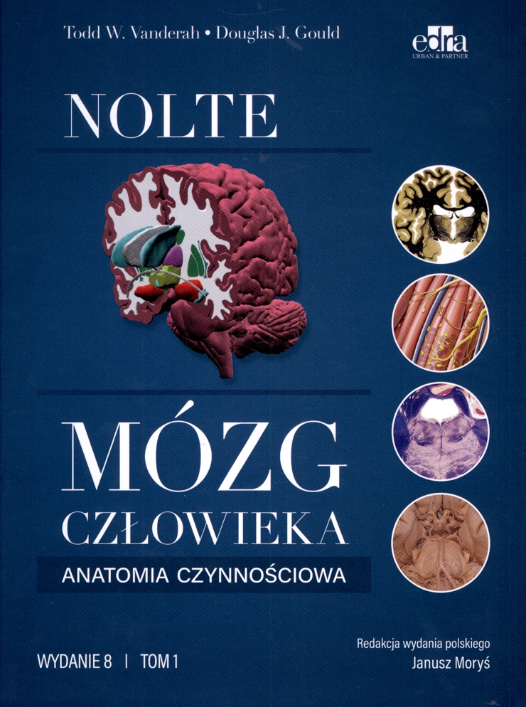 Nolte mózg człowieka. T. 1, Anatomia czynnościowa / Todd W. Vanderah, Douglas J. Gould. - Wydanie II polskie / redakcja Janusz Moryś ; [tłumaczenie z języka angielskiego: prof. dr hab. n. med. Janusz Moryś]. - Wrocław : Edra Urban & Partner, copyright 2022. - X, 398 stron : fotografie, ilustracje, wykresy ; 28 cm.