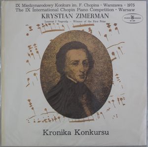 IX Międzynarodowy Konkurs im. F. Chopina : Warszawa 1975 : kronika konkursu. - Warszawa : Polskie Nagrania, 1975. - 1 płyta : analog., 33 o/min, stereo. ; 30 cm.