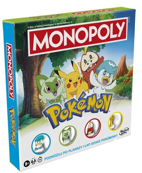 Podróżuj po planszy i łap dzikie Pokémony! Gra Monopoly Pokémon łączy klasyczne zasady Monopoly z ekscytującym łapaniem Pokémonów. Graj jako Trener Pokémonów podróżujący przez rozległą krainę ze swoim Pokémonem-towarzyszem. W tej ciekawej grze dla dzieci nieruchomości to tętniące życiem lokalizacje, a Poké Balle zastępują pieniądze.