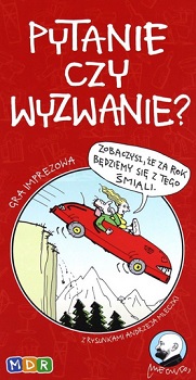 Pytanie czy wyzwanie? [Gra planszowa]./ [koncepcja gry: D&M Rapa] ; ilustracje Andrzej Mleczko. - [Warszawa] : MDR, copyright 2022. - 1 pudełko : karton, plastik, kolor ; 14x26x6 cm.
