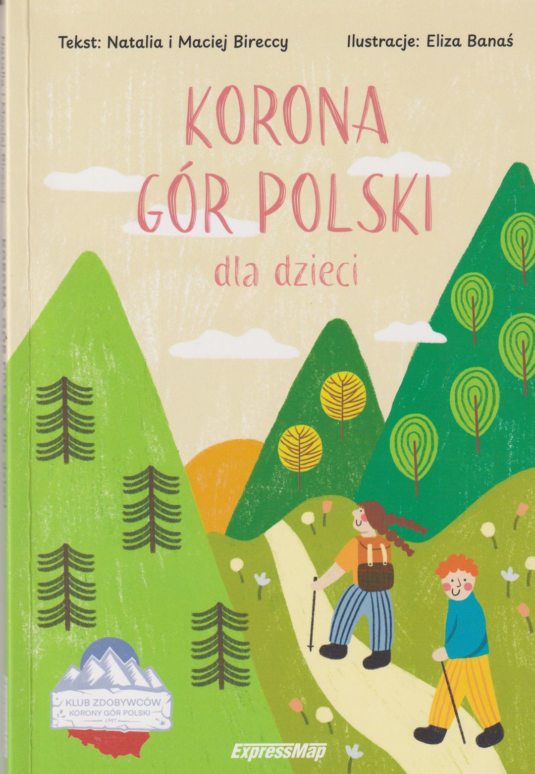 Korona gór Polski dla dzieci / [autorzy: Natalia i Maciej Bireccy ; ilustracje: Eliza Banaś]. - Wydanie drugie. - Warszawa : ExpressMap, 2025. - 96 stron : ilustracje ; 24 cm.